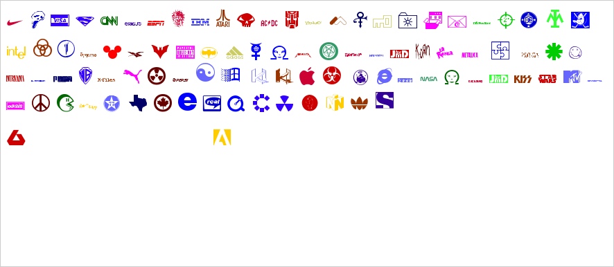 Famous text logos include those of Coca Cola, IBM, Volkswagen, General Electric, Fiat, McDonalds, Nokia, LG, Toyota, and Intel. Among companies that use famous symbol logos are Mercedes, Apple, Mitsubishi, Cadillac, Ferrari, Renault, Porsche, and Subaru. Famous combination logos include Sprite, Walt Disney, Taco Bell, Pepsi, Burger King, Jack Daniel's, and Mr. Bubble.